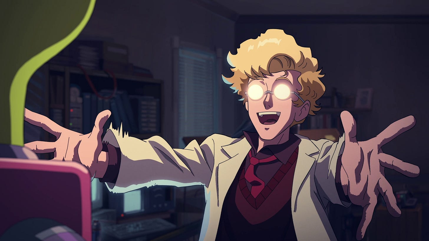 La última producción de 2025 que vi en 2025 fue The Elephant. Es un corto animado que dura lo mismo que un capítulo de anime. Se juntaron Pendleton Ward (Adventure Time), Rebecca Sugar (Steven Universe), Ian Jones-Quartey (O.K. K.O.!) y Patrick McHale (Over the Garden Wall) a hacer algo juntos, pero separados. Todos menos Ian se hicieron conocidos por Hora de Aventura y en el equipo de producción también hay gente como Adam Muto y Kent Osborne, fundamentales de Adventure Time.